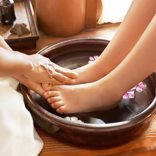 The Foot Spa treatment is a refreshing and relaxing experience designed to soothe tired feet and restore softness. It begins with a warm soak infused with calming herbs to relax the muscles and soften the skin. This is followed by a gentle exfoliating scrub to remove dead skin and smooth rough areas. A hydrating mask is then applied to deeply nourish and revitalize the feet. The treatment concludes with a light, soothing massage to enhance better absorption of moisturizer, leaving your feet feeling refreshed, silky-smooth, and rejuvenated.
